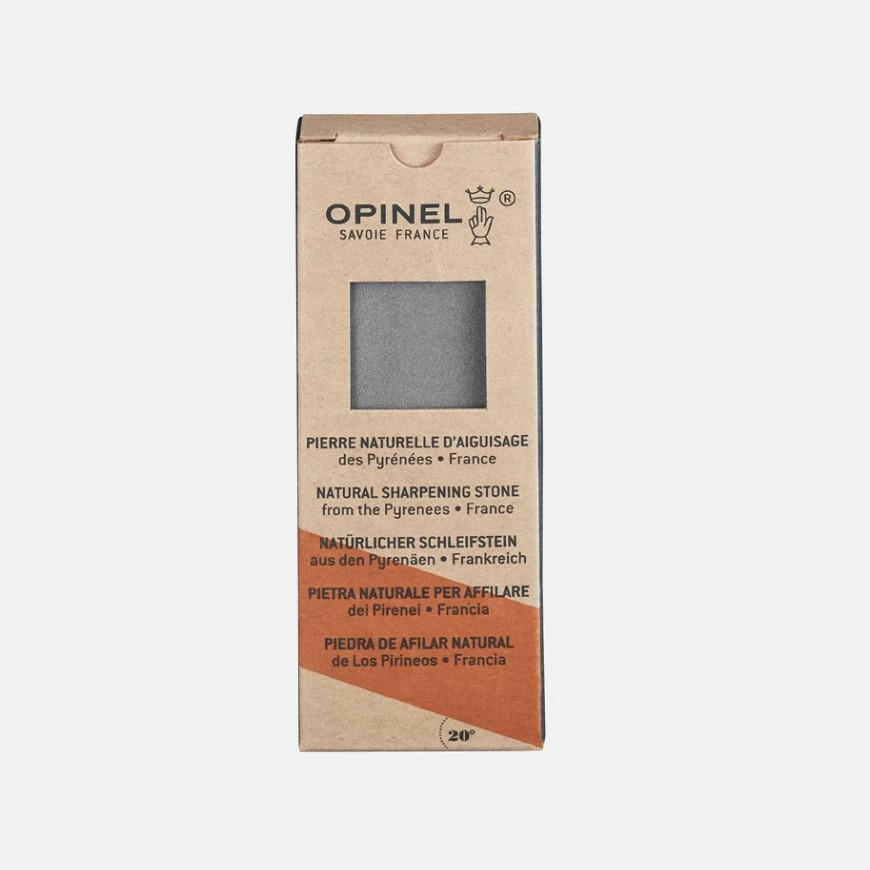 The large natural Opinel sharpening stone comes from the Ariège in the Pyrenees and has a fine grain. Made of schistose sandstone, it effortlessly sharpens knives and restores their sharp, cutting edge.