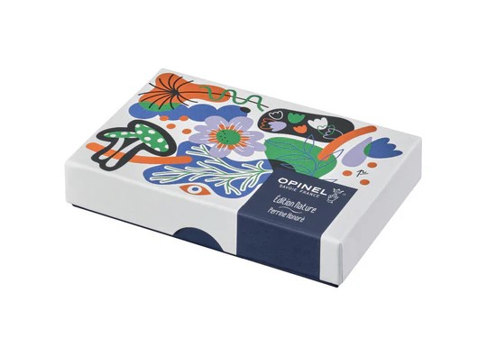 Perrine Honoré, a French illustrator and muralist, has decided to explore a synthetic, colourful and naive language halfway between the abstract and the figurative. Different natural elements appear on the handle of the knife so that everyone can interpret them in their own way.